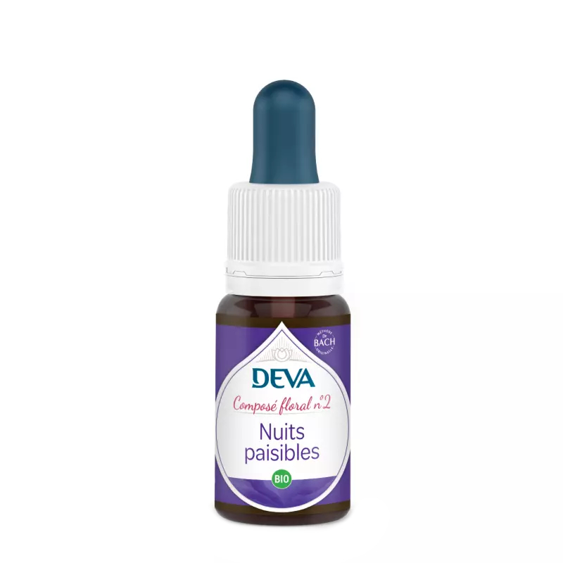 Le composé floral Nuit paisible DEVA est élaboré pour vous aider à retrouver naturellement un sommeil réparateur. Formulé selon la tradition des élixirs floraux, ce composé agit sur les émotions qui perturbent le coucher et la nuit. Il s’adresse aux personnes sujettes aux réveils nocturnes, aux cauchemars, aux pensées répétitives ou aux ruminations mentales qui empêchent de s’endormir ou de rester endormi.
