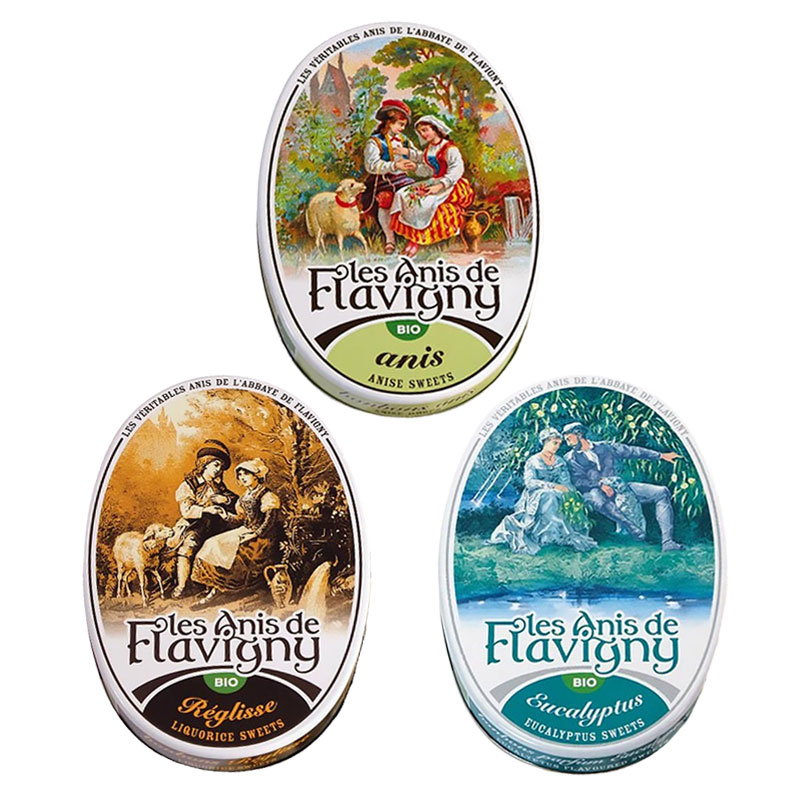 Découvrez les délicieux bonbons à l'anis bio de la maison Les Anis de Flavigny avec cet assortiment réconfortant : anis nature, anis réglisse et anis eucalyptus. Préparés selon un savoir faire transmis de génération en génération depuis des siècles.