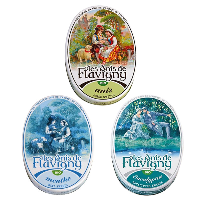 Découvrez les délicieux bonbons à l'anis bio de la maison Les Anis de Flavigny avec cet assortiment réconfortant : anis nature, anis menthe et anis eucalyptus. Préparés selon un savoir faire transmis de génération en génération depuis des siècles.