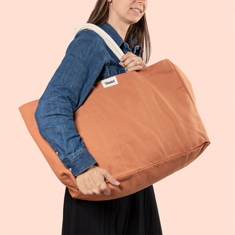 Ce sac cabas terracotta de Venga est l’allié incontournable pour vos courses, vos séances de shopping ou vos escapades du week-end. Fabriqué dans une toile de canvas épaisse et robuste de 520 g/m² en coton biologique, ce sac offre une durabilité exceptionnelle tout en alliant style et engagement écologique.